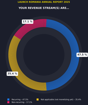 • Revenue is more polarized: €0 = 44% (vs 27.1% in 2023). Recurring remains the dominant model (47.5%; 2024: 47.1%).