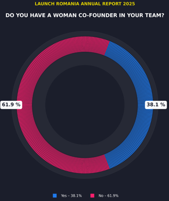 In 2025, 38.1% of teams report having a woman co-founder, while 61.9% do not.